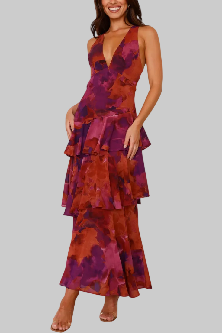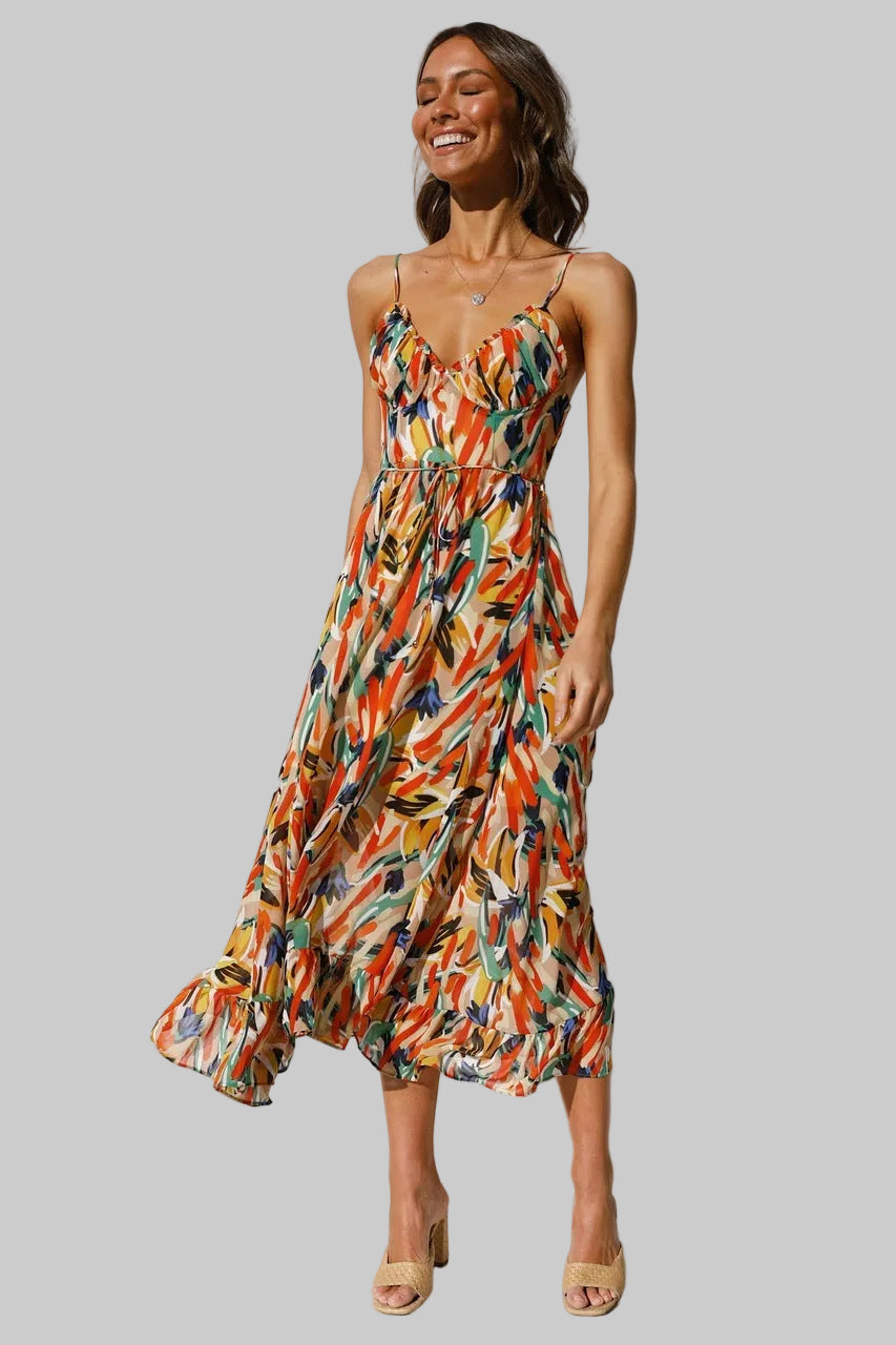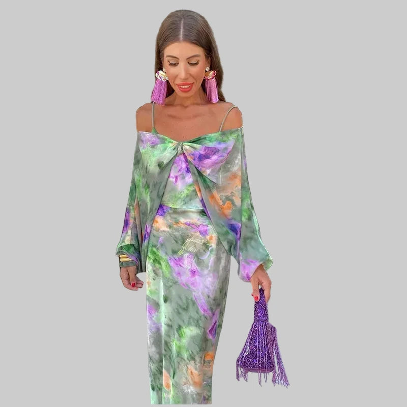Anisten™ | Stylová Maxi Šaty s Halo-Dye-Print a odnímatelným šálkem