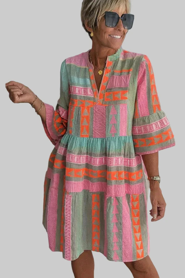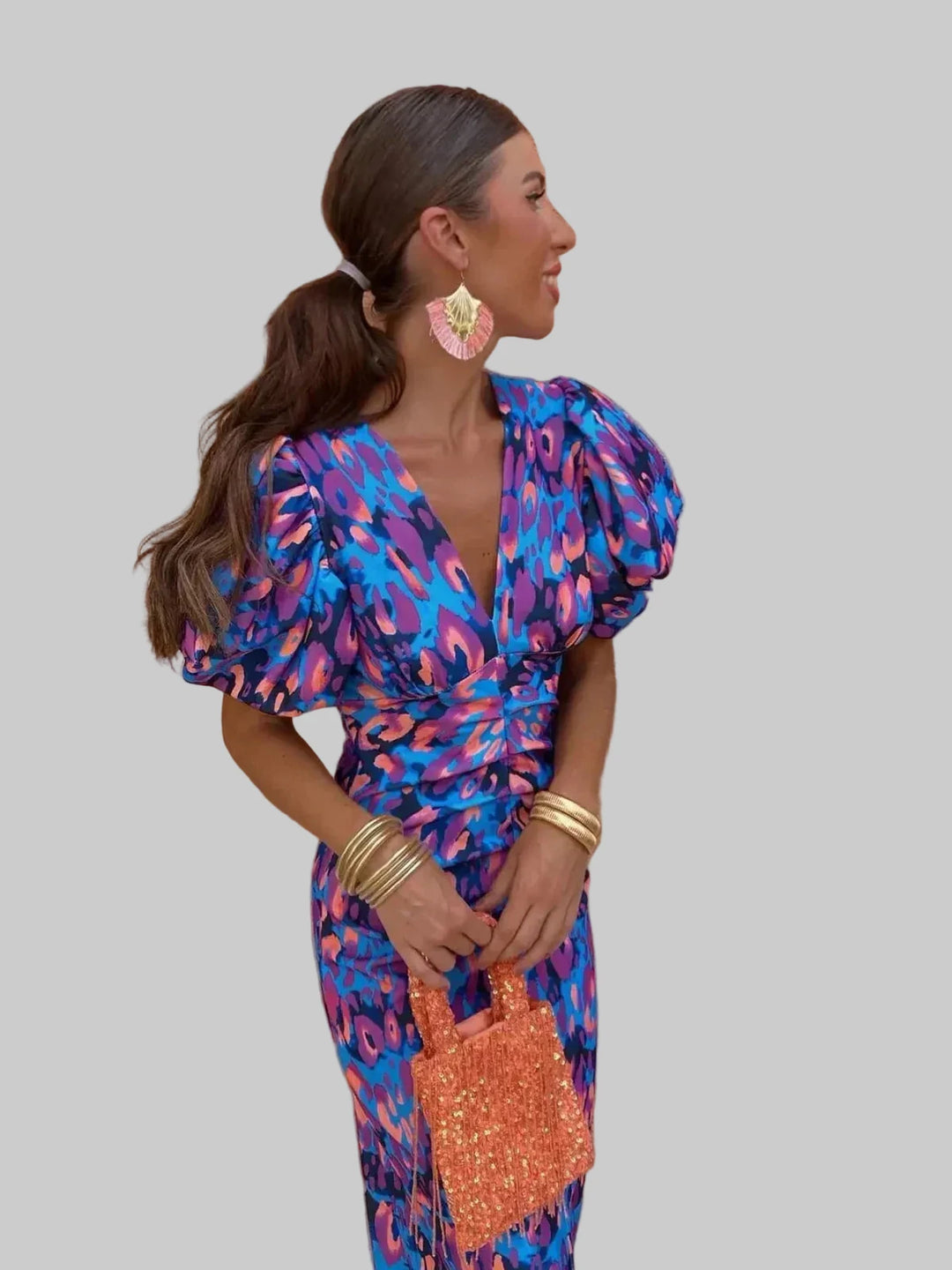 Arielle™ | Barevné Midi Šaty s Plisovanými Rukávy